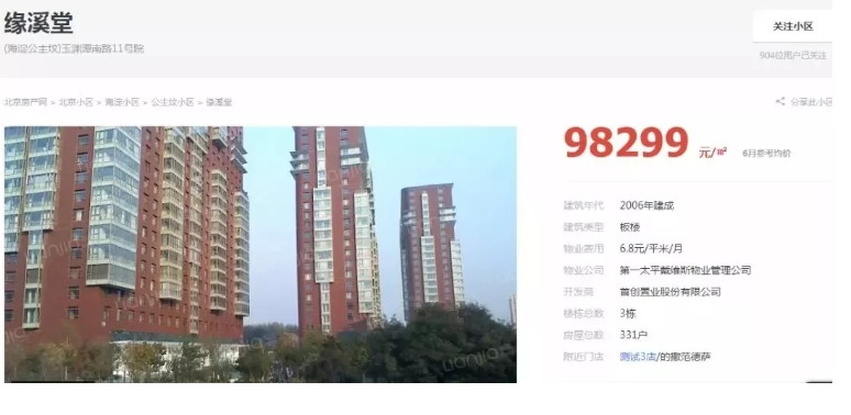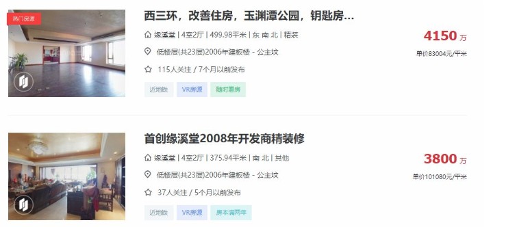 白静买的这些房产都能称得上豪宅,以海淀区玉渊潭南路的两套房来看,均价近10万/平。