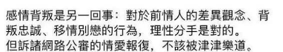 反观Hebe近期的一次热搜,倒不是因为作品,而是在罗志祥的分手事件中发表一番言论,她以一种十分理性、客观、高姿态的姿态劝诫周扬青不该当众曝光前男友的行为,认为这样会造成网络暴力,教坏小朋友。