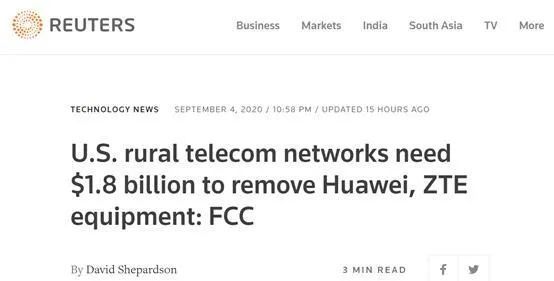 另据美媒报道,按照美国总统特朗普今年3月签署生效的《安全可信通信网络法》规定,电信运营商必须移除所谓的“可疑外国网络设备”。虽然联邦政府设立了一套程序,表示会为运营商报销这类开支,但截至目前,国会仍然没有向运营商们拨发这笔款项。