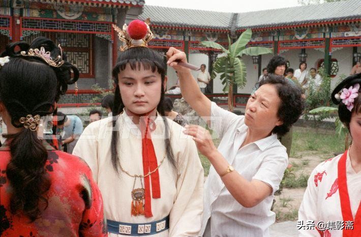 電視連續劇《紅樓夢》已於1985年8月下旬在北京新建的大觀園中開拍。化妝師在拍攝現場為賈寶玉的扮演者歐陽奮強化妝。