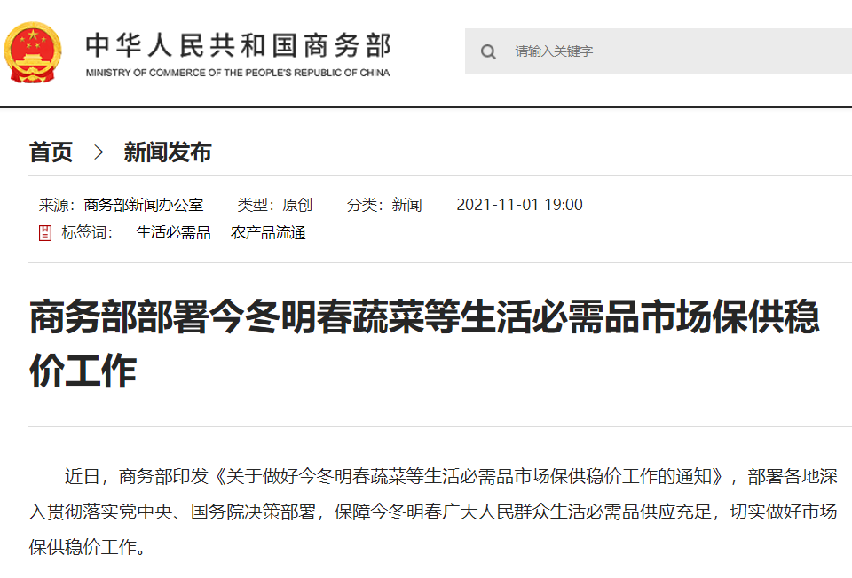 一則普普通通的穩定冬季蔬菜價格的商務部通知,被別有用心之人挑出一句鼓勵儲備生活必需品的話來,居然給解讀出馬上要打仗的信息。