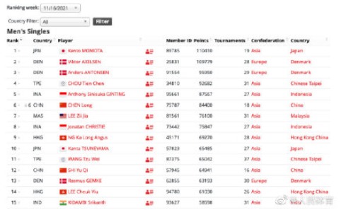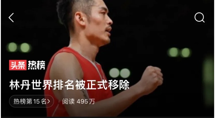 林丹: 林丹羽毛球男单世界排名被正式移除