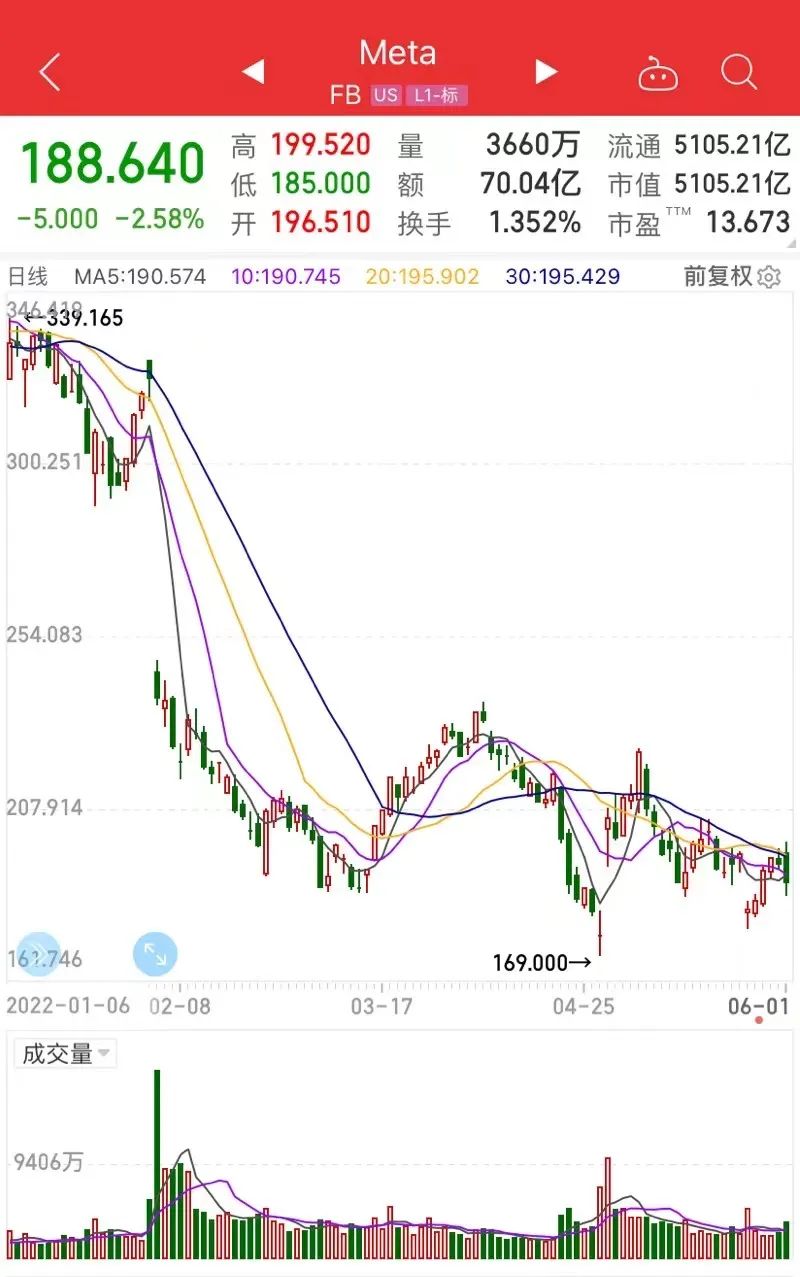 如今,Facebook的营收是2012年的25倍以上。2021年,Facebook的市值达到顶峰,一度超过1万亿美元。对于Facebook股东来说,有记录以来最糟糕的一天发生在今年2月份。当时,Facebook股价暴跌26%,主要因为营收预期低迷。截至周三收盘,Meta股价自年初以来累计下跌44%。