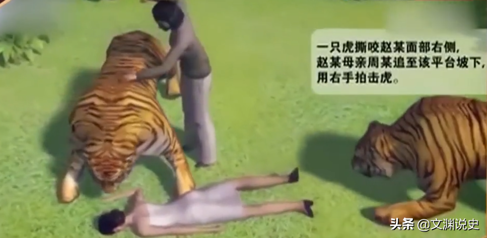 当时,另一只老虎正撕咬着她的右脸,突然,刘行和母亲周琴一起从车上冲了下来。