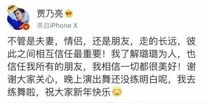 起初,贾乃亮站出来力挺李小璐,称自己相信老婆的为人,夫妻之间最重要的就是信任。