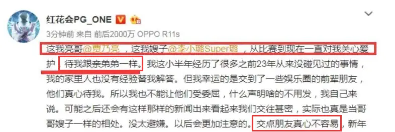 PG One也给予回应:“这我哥贾乃亮,这我嫂子李小璐,他们一直很支持我,交点朋友真心不容易。”