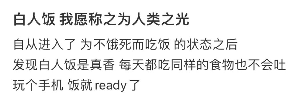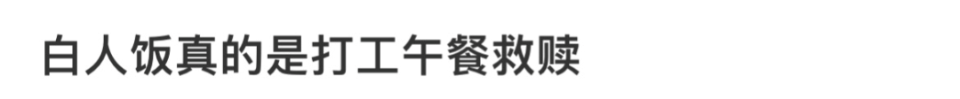 这是白人饭宇宙的宗旨,有啥吃啥。对他们来说:吃,不是为了享受美食,而是延续生命。