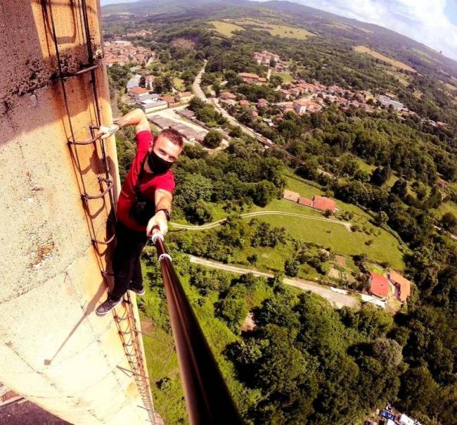看他在高达300米的烟囱边缘一路如履平地,恐高症的人早已吓破了胆。