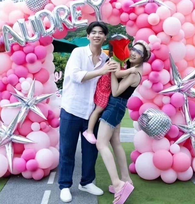 与此同时,她的丈夫辛奇隆也难得现身,穿着白色宽松衬衫,依然高大帅气。夫妻俩抱着女儿荷包蛋一同合影,画面充满温馨和幸福。