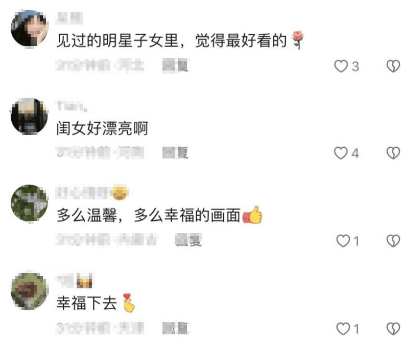 网友们对sugar颜值可以说是赞赏有加,具体评论如下:“见过的明星子女里,觉得最好看的”“闺女好漂亮”。