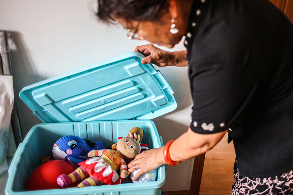 2014年9月7日,北京,失联乘客家属胡秀芳,她把孩子的玩具都收集在整理箱里。在马航失联事件中,她的儿子、儿媳以及当时只有3岁的孙女都在航班上。