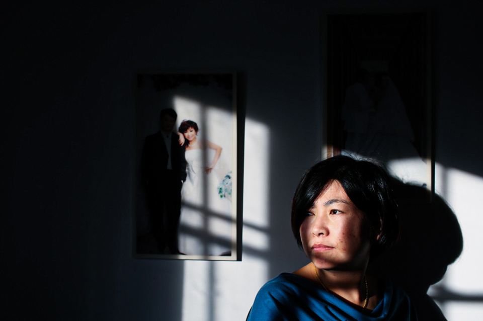2014年12月22日,北京,MH370失联乘客家属程利平的家中,斜阳透过窗户打在她的婚纱照片上。她的丈夫鞠坤失联之后,至今还没有消息。
