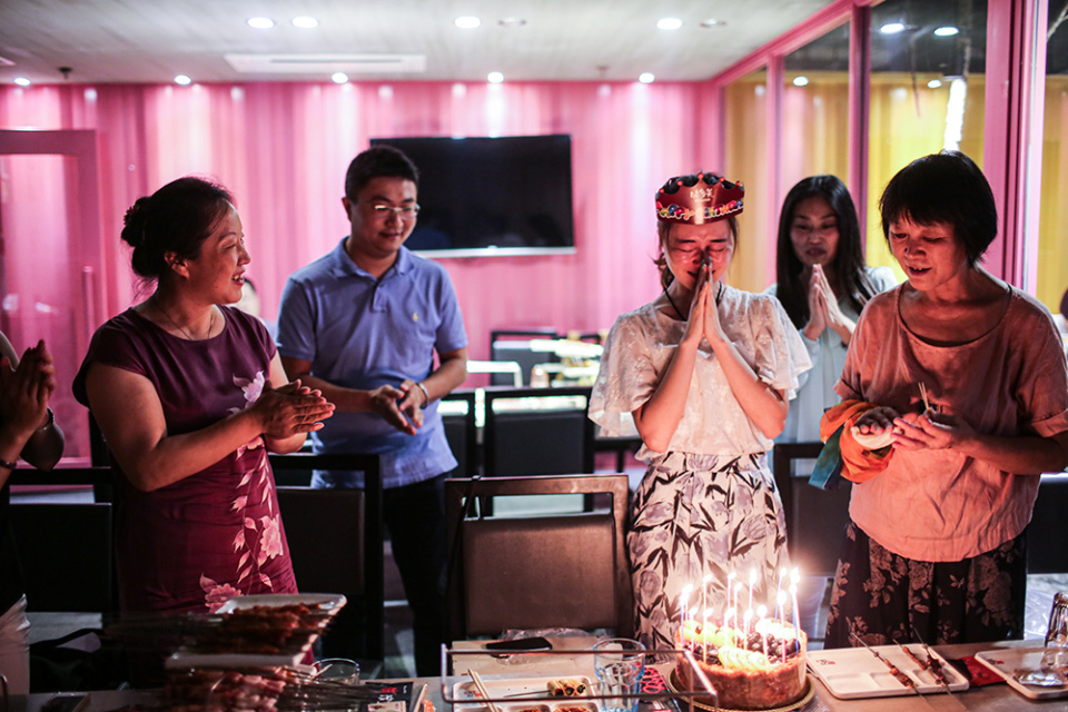 2015年7月4日,北京,一家餐馆里,部分失联乘客家属为张倩举行生日会。在10年的时间里,生日会是马航失联乘客家属们之间相互慰藉的一种方式。