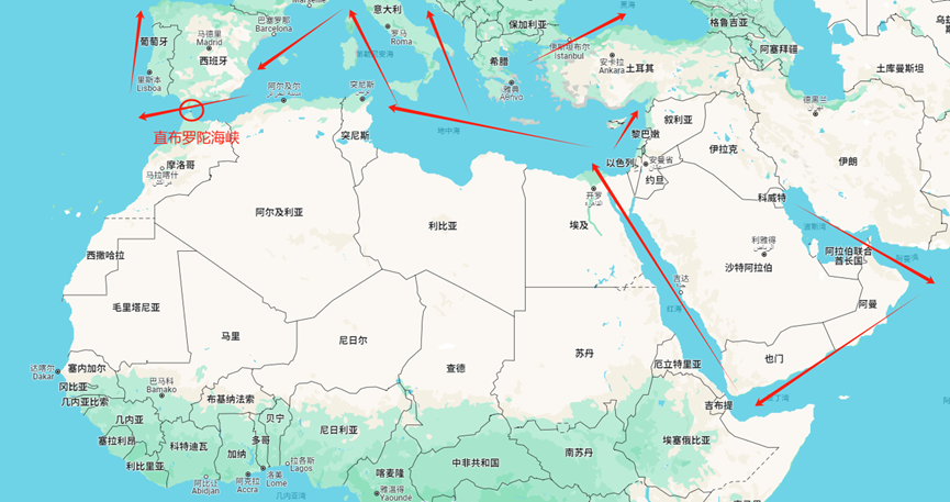 然而,从非洲绕行的船只同样需要进入地中海以便将货物运输到南欧港口,若直布罗陀海峡被封,商船只能通过葡萄牙西班牙法国等西欧靠海国家卸货,并使用陆路交通进行配送,这将大大增加运输时间和运输成本。