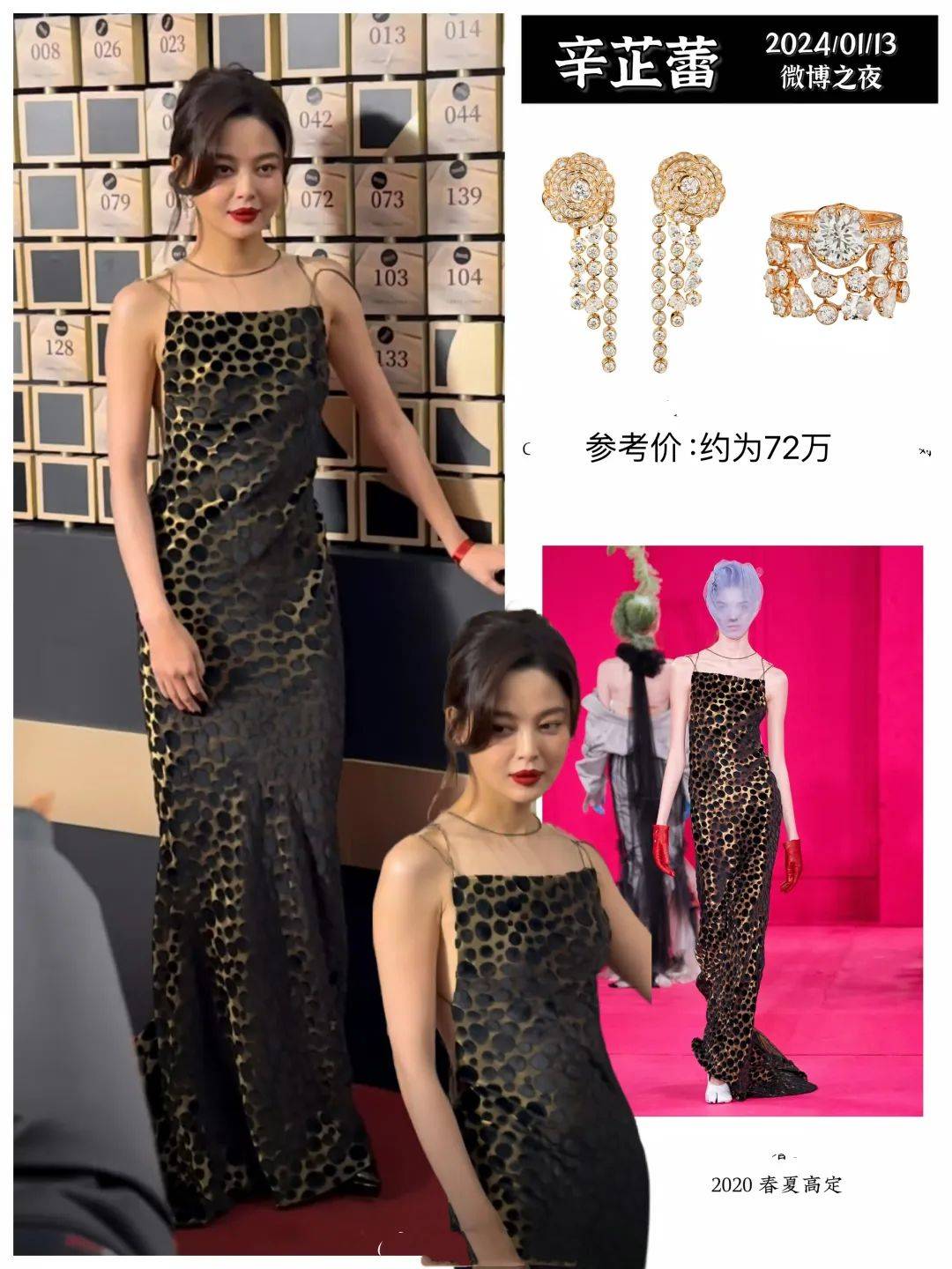 除了高定礼服,辛芷蕾的这套珠宝来自高奢品牌,单是这对黄金流苏耳环就超过72万,加上这枚高珠戒指,估计总价轻松超过百万。