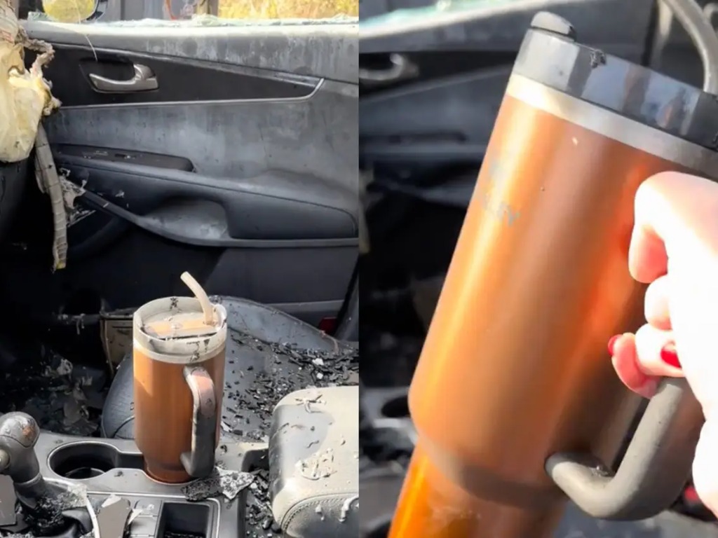 去年11月还传出有汽车着火烧成废铁,车上的Stanley保温杯竟完好无损,甚至冰块没溶掉,成为这个品牌最强宣传。