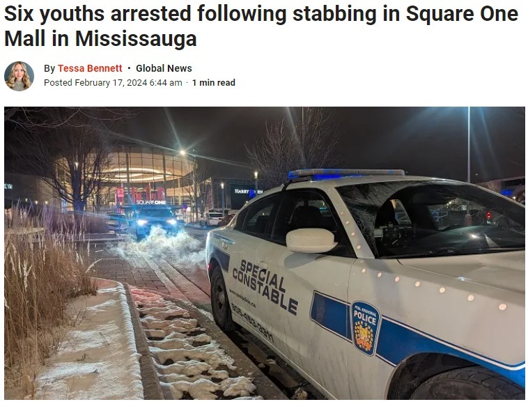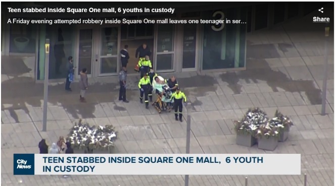 周五晚间,在大多伦多地区的密西沙加 Square One 购物中心,发生捅伤事件。6 名青少年被拘留,1 人被送往密西沙加医院。