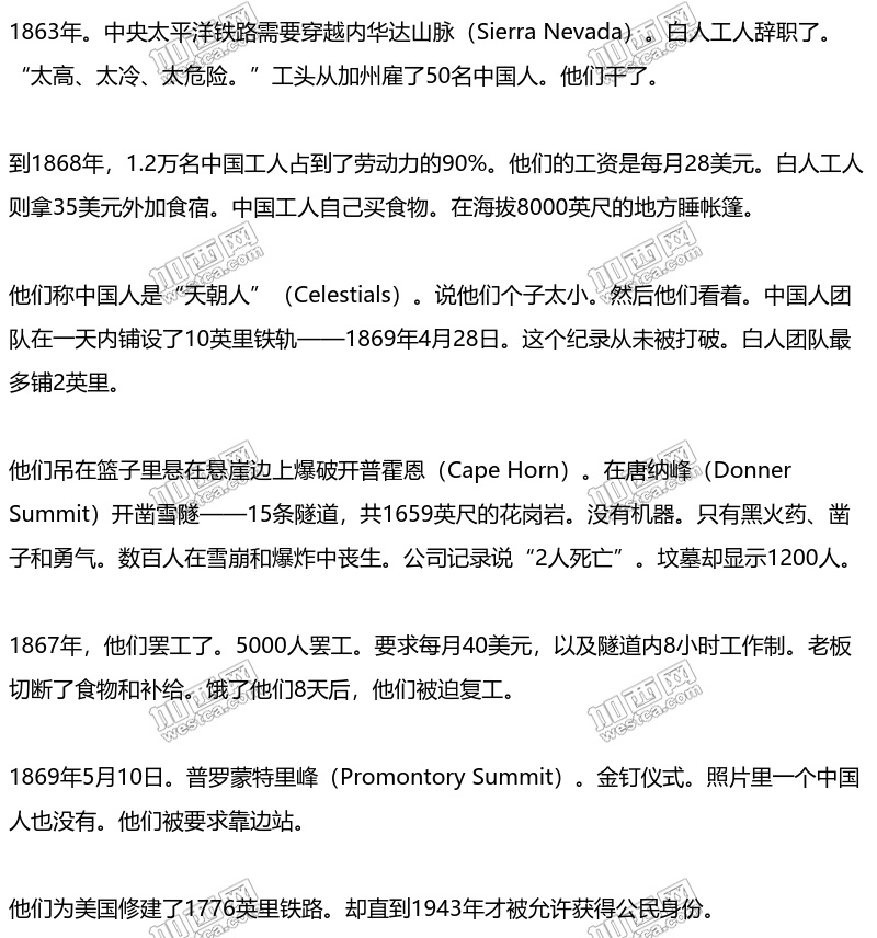 他們為美國修建了1776英裡鐵路。卻直到1943年才被允許獲得公民身份。