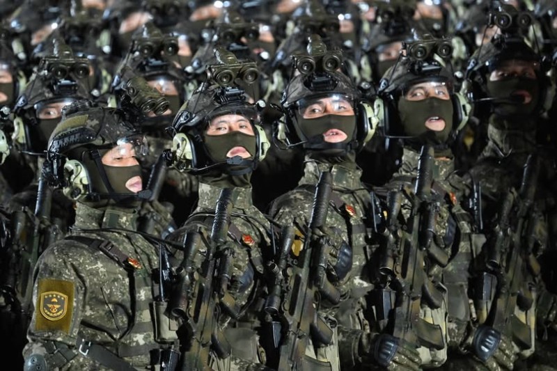 阅兵式上的朝鲜人民军第11军团(特殊作战军)。