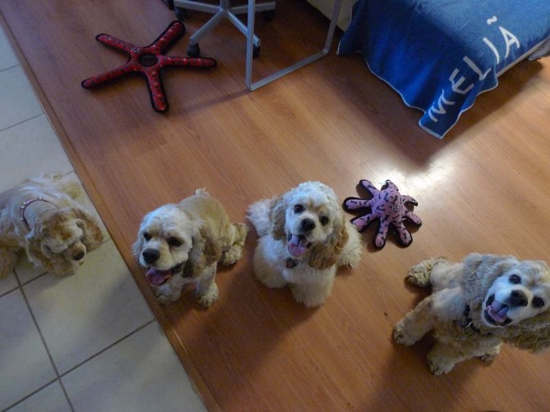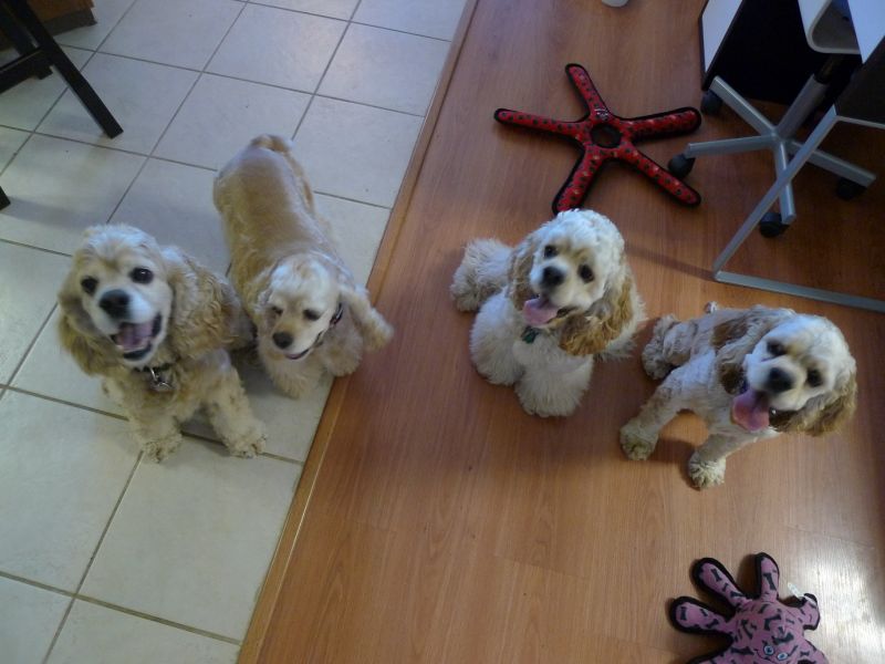Four beautiful American Cocker Spaniels. (中文译为:美式可卡犬)