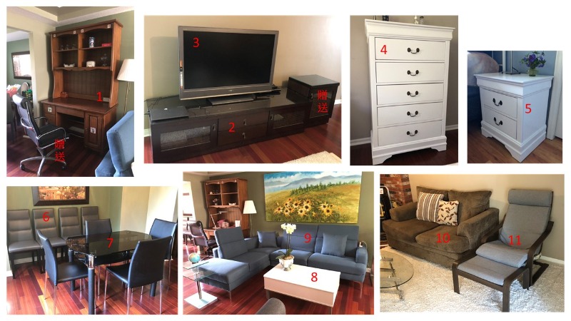 Moving sale:优质品牌家具电器低价出清,日用品及餐具免费,一件不留因搬家出清现有电器家具,大多数家具少用如新,稍有磨损者皆免费赠送。如下列出大项目,另有许多檯灯、电扇、电暖炉、咖啡机、鞋架、电脑及萤幕等,皆以低於30元出售, ... |