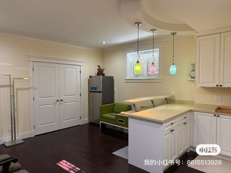 1. 地下室套房,独享较大独立起居空间,起居室配冰箱吧台,共享侧门入口,共享主层敞亮厨房餐厅和客厅家庭厅。