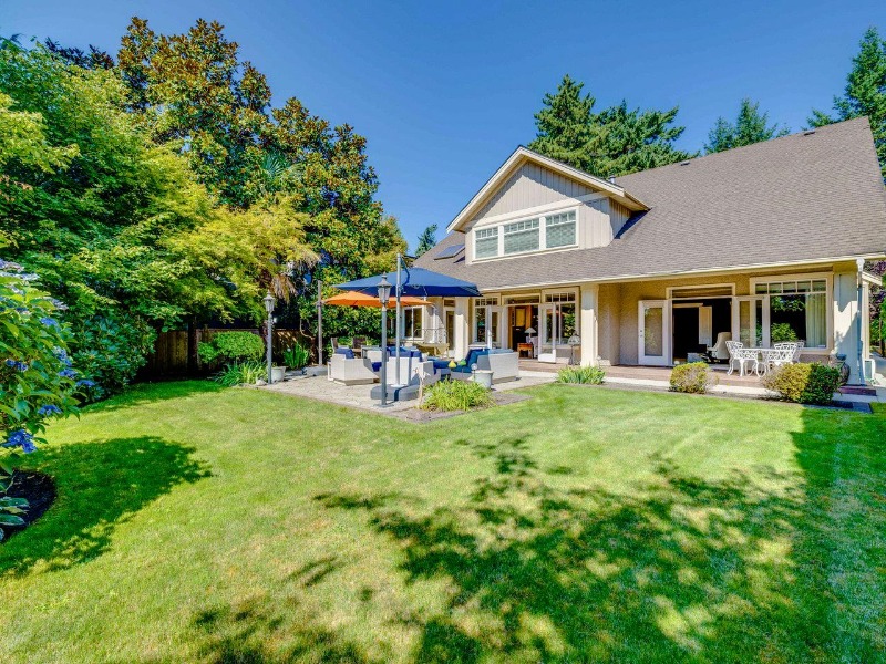ESTATE-LIKE FAMILY HOME! - Top quality construction craftsman style on a completely private, sunny, South facing, park like 11,603 sq ft (60x194) lot with beautiful gardens including a built in sprinkler system! The home features a popular, high ceiling 'Great Room' design with an impressive Fireplace! Extra Large PRIMARY BEDROOM ON THE MAIN FLOOR (with A/C) leads to the garden patio for you to enjoy your morning coffee. Other features incl: open concept, gourmet Kitchen, separate Dining Room, 3 BDRMs up, radiant in floor heating, new high-end boiler system, 225 amp service, newer high-end "low E" windows, H/W floors & crown mouldings. Extremely well kept by original owners. Quiet location surrounded by newer executive homes in upper Tsawwassen & just a short walk from the amazing Sunsets!