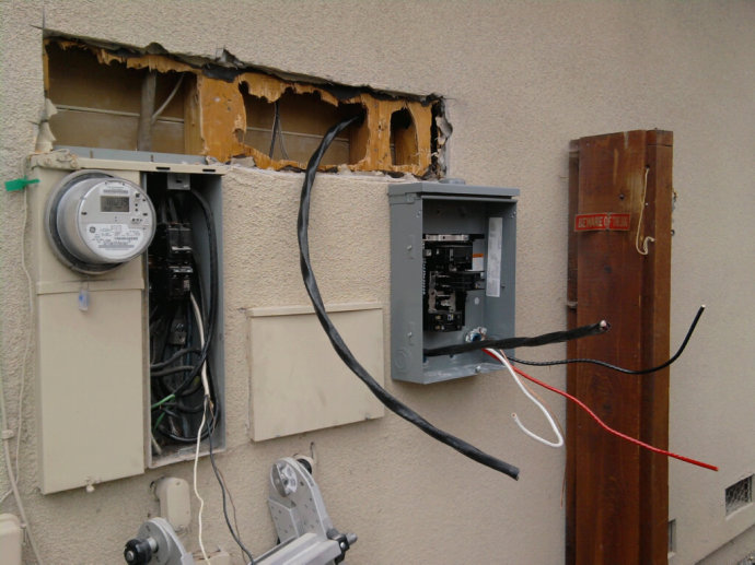 某独立住宅原先旧的100安培配电盘的改造施工现场