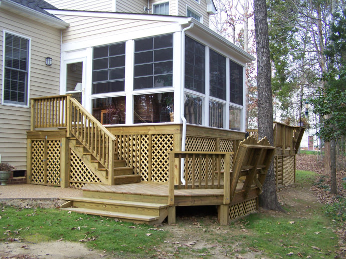某轻型木结构独立住宅室外木结构平台的外观情形