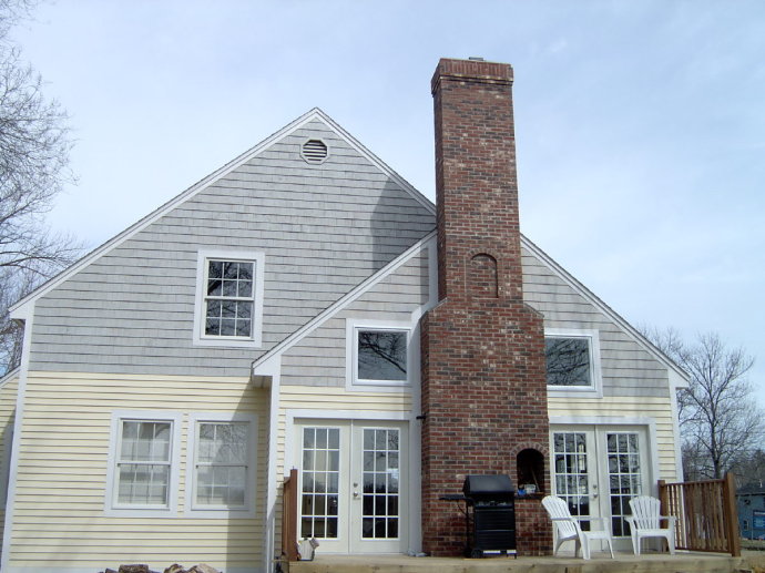 某轻型木结构独立住宅室外砖砌烟囱的外观情形
