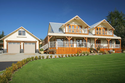 某轻型木结构独立住宅室外木结构门廊的外观情形