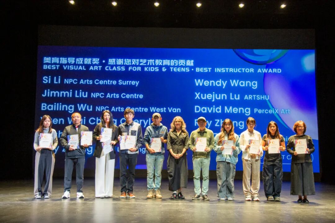 列治文市政府艺术服务部主管 Liesl Jauk 女士(右6)为教师们颁发“美育指导成就奖”