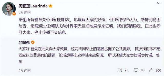 最后,当事人何超莲和窦骁只好被迫出来澄清。