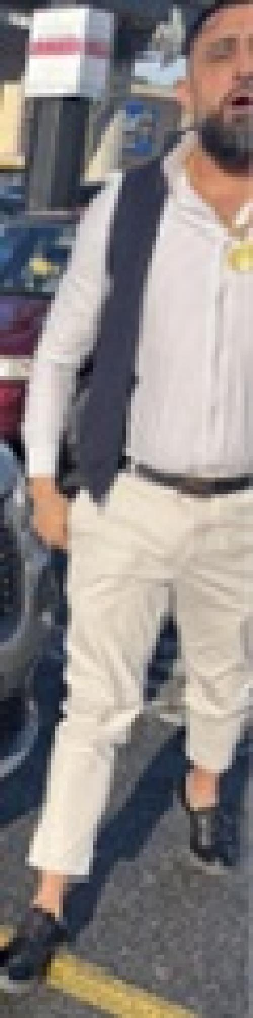 调查人员称,该男子当时身穿黑色鞋子、卡其色裤子、浅色衬衫和黑色背心。警方表示,他还戴着一条粗大的金项链。