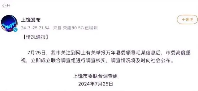 舉報效果,正如“上饒發布”的通告所示,上饒市已經就李長柳舉報毛某侵犯自己的女兒一事,展開調查。- 新聞來源於其它媒體,內容不代表本站立場!